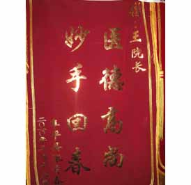 张骅尹,女,7岁,河北保定阜平县人,患者于2008年1月份无明显诱因出现紫癜,在北京儿童医院确诊为“过敏性紫癜,紫癜性肾炎”,经甲强龙等治疗后,病情仍不见好转,PRO +,BLD 3+,后出现咳嗽、发热等症状来我院求诊。服用医药一个疗程后,PRO -,BLD -,并且无其他不适情况,继续服用中药三个疗程,病情稳定,未复发。随访至今情况良好。其父送来锦旗“医德高尚,妙手回春”以示感谢。